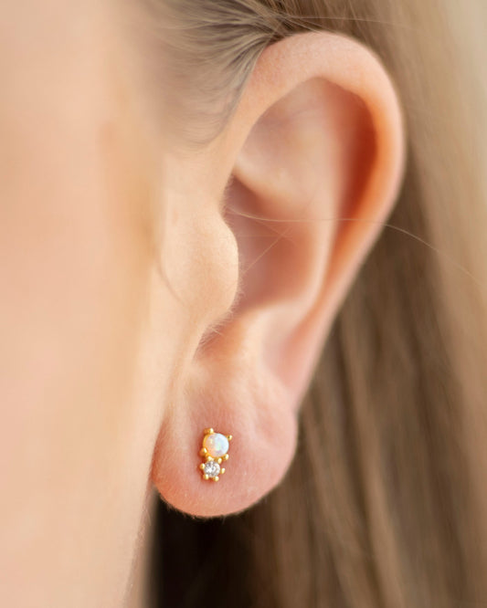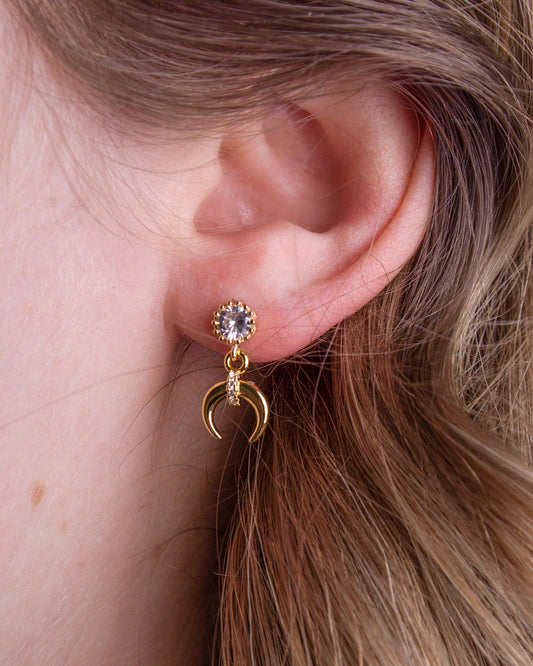 Aurelia Gold Crescent Moon CZ Stud Earrings