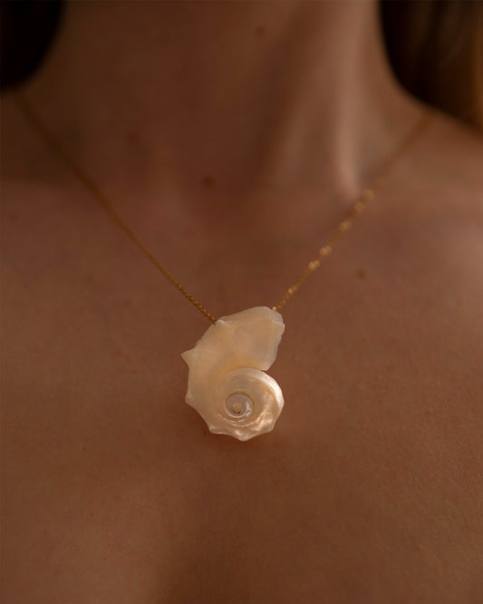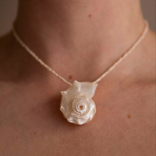 • Melody Spiral Shell Freshwater Pearl Handmade Unique Necklace