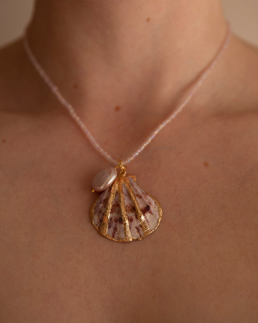 • Miles Pink Shell And Pearl Handmade Unique Necklace