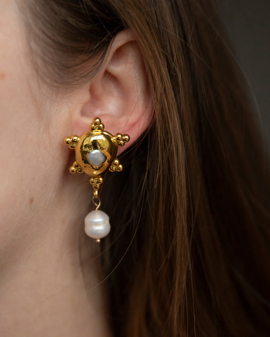 Nara Gold Baroque Freshwater Pearl Stud Earrings