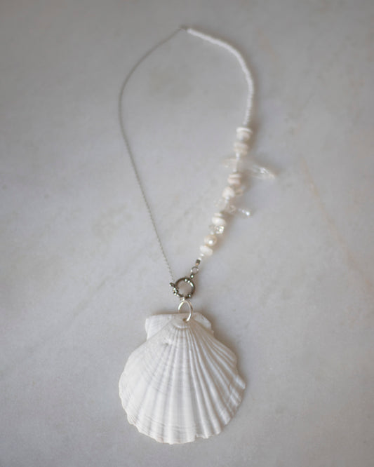Juliet Silver Shell Necklace With Moonstone Pearl + Quartz