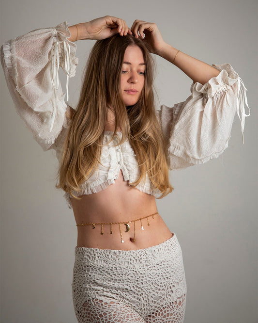 Naida Gold Celestial Moon + Star Belly Chain, Personisable Length